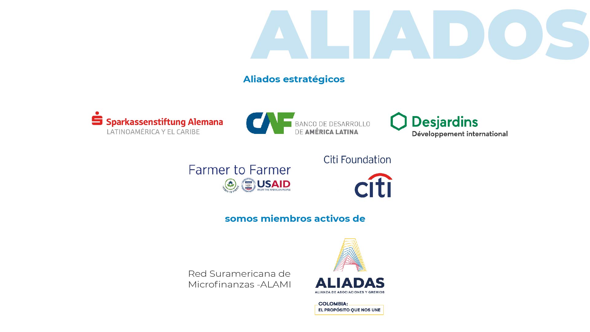 Somos la asociación líder en el sector de las microfinanzas en Colombia. Ofrecemos una amplia variedad de servicios a nuestros asociados, siendo referentes en la industria gracias a nuestros informes de investigación, análisis y programas de formación en educación financiera.